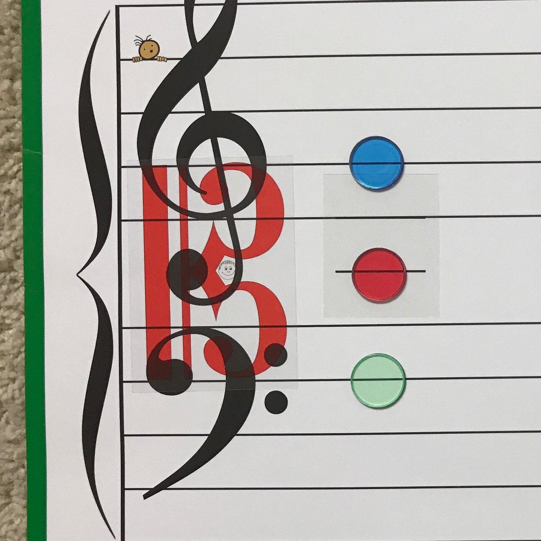 Magic notes are used as game markers and to learn dictation, notes on the staff, and how to write scales, triads, and chords.
