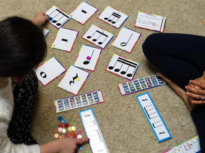 - The Blue Jello drawing colors and colored borders convey rhythmic values in a sequence of rainbow colors: