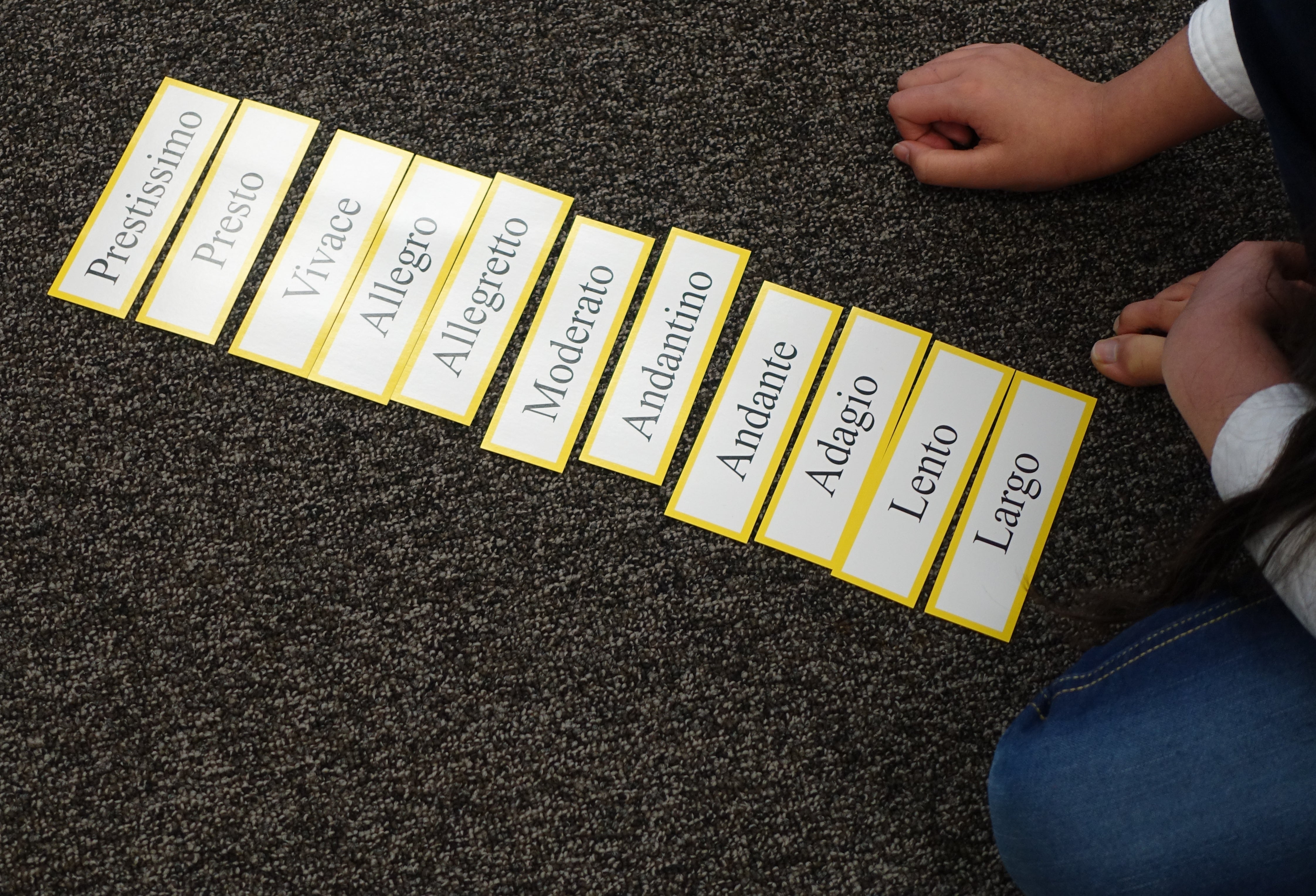 - Largo, Lento, Adagio, Andante, Andantino, Moderato, Allegretto, Allegro, Vivace, Presto and Prestissimo